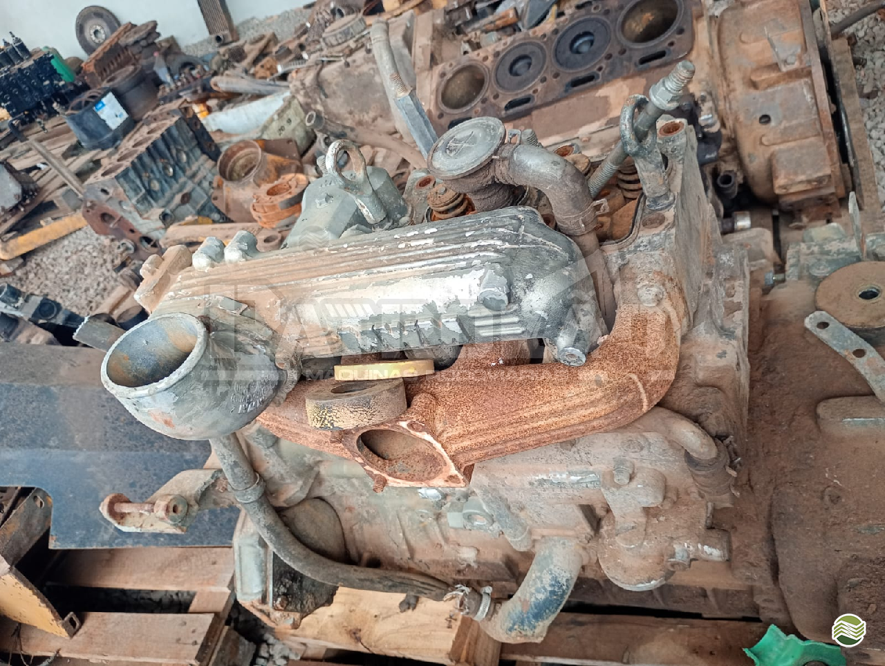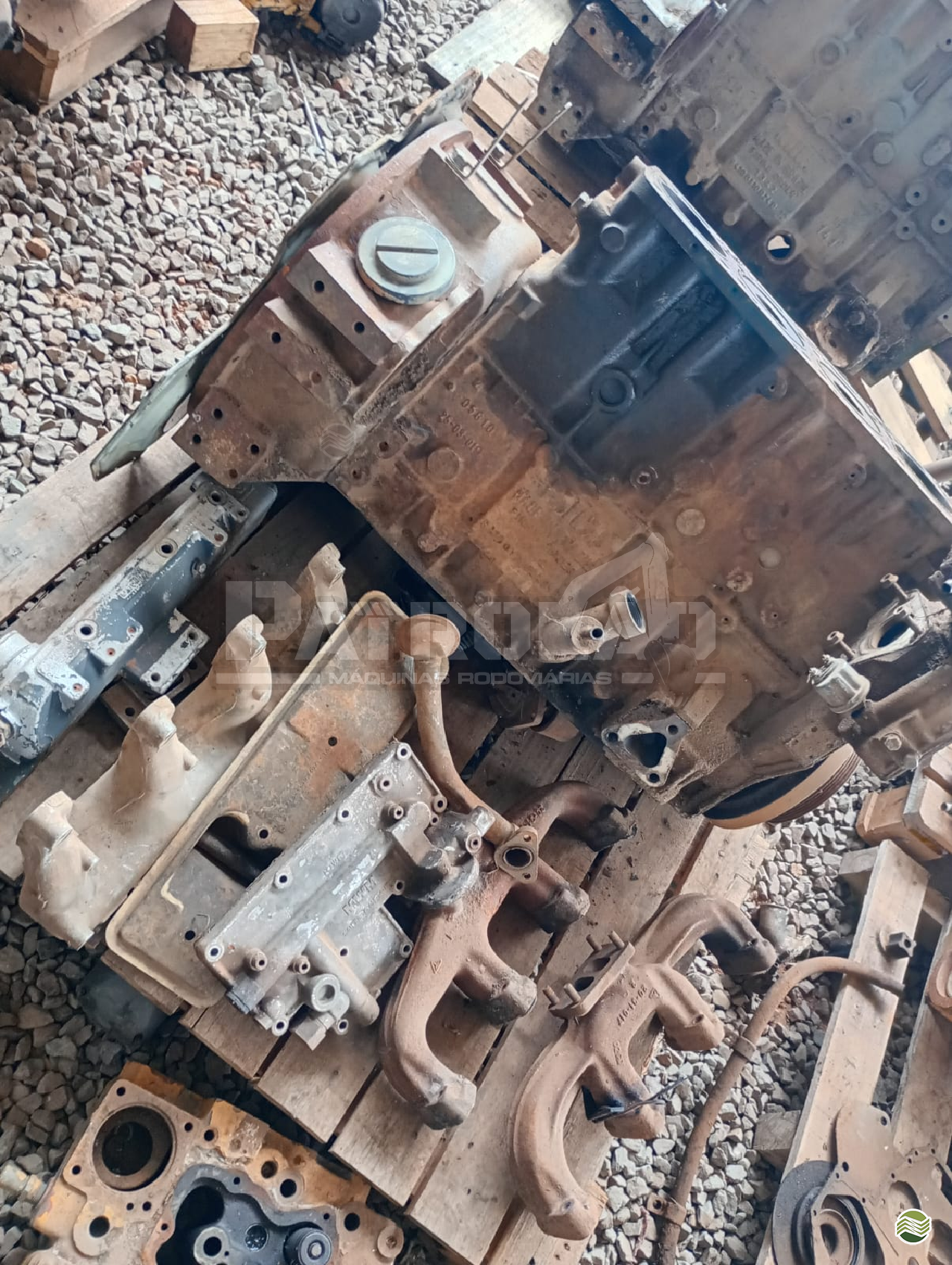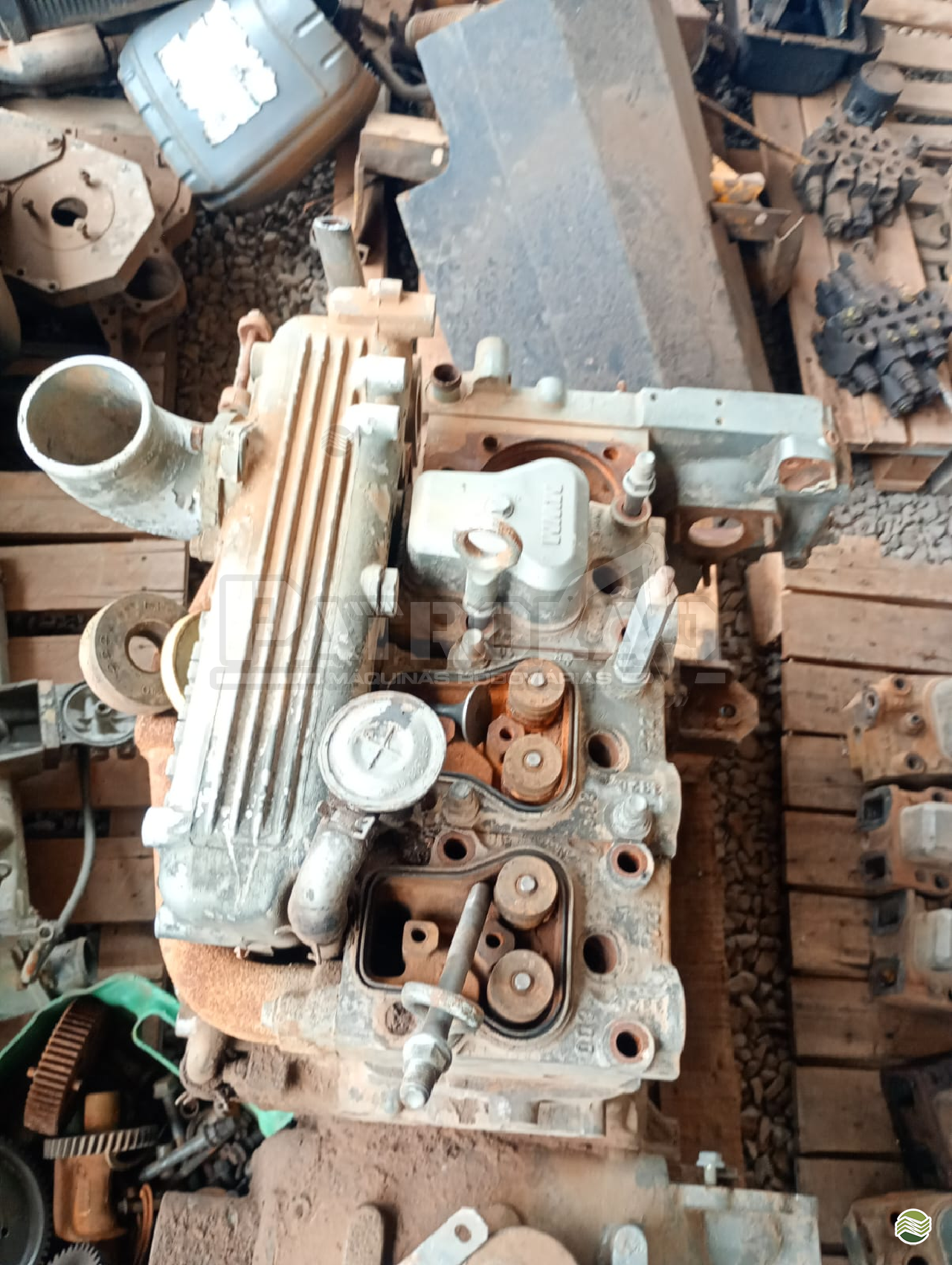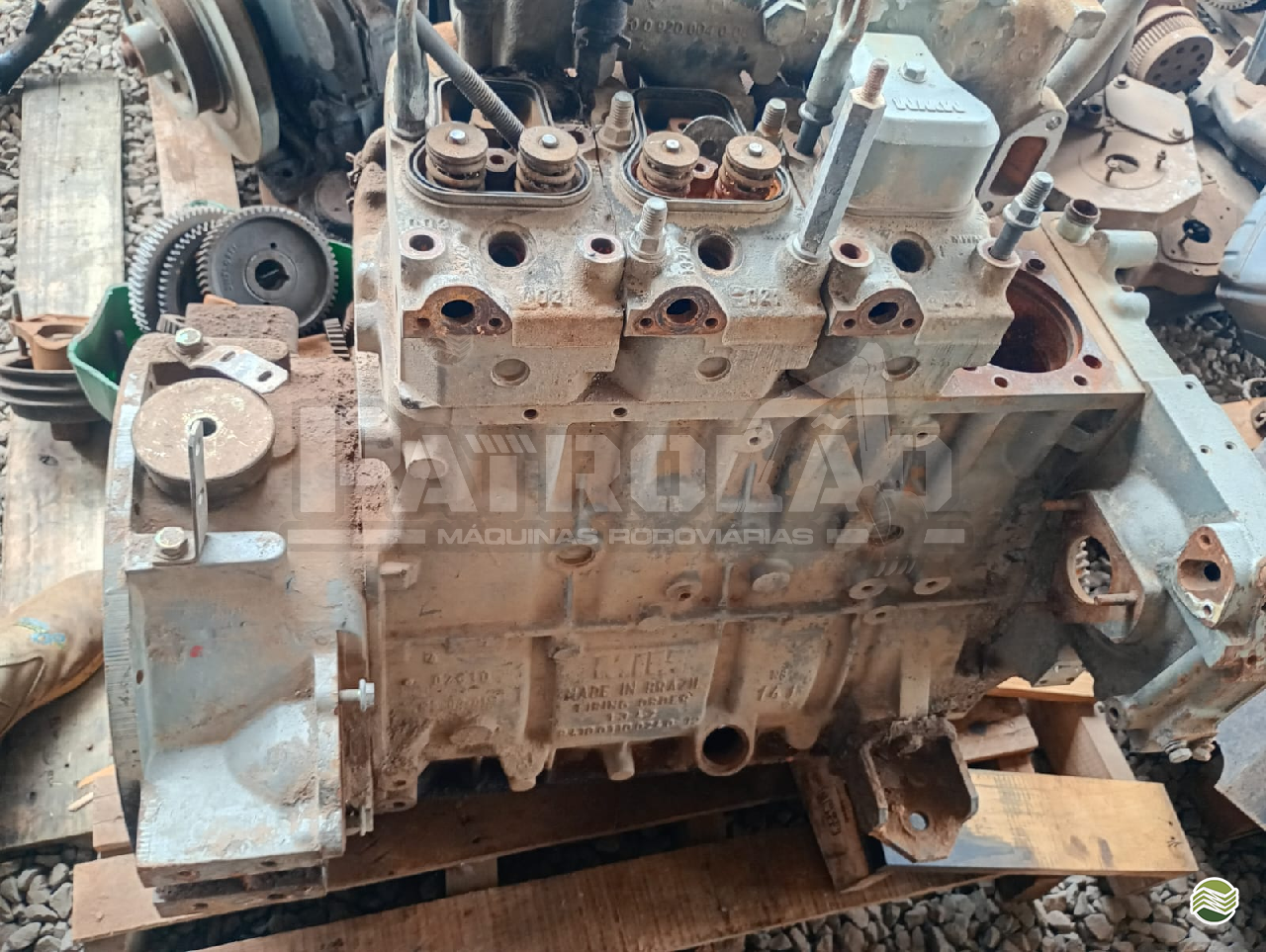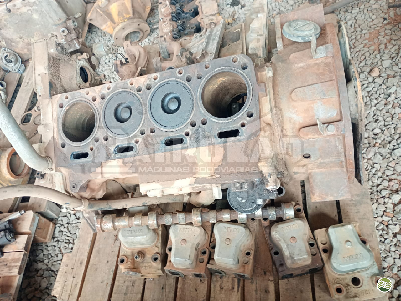 Diversos itens em bom estado: bloco, cabeçote, bielas, bomba injetora, entre outros.