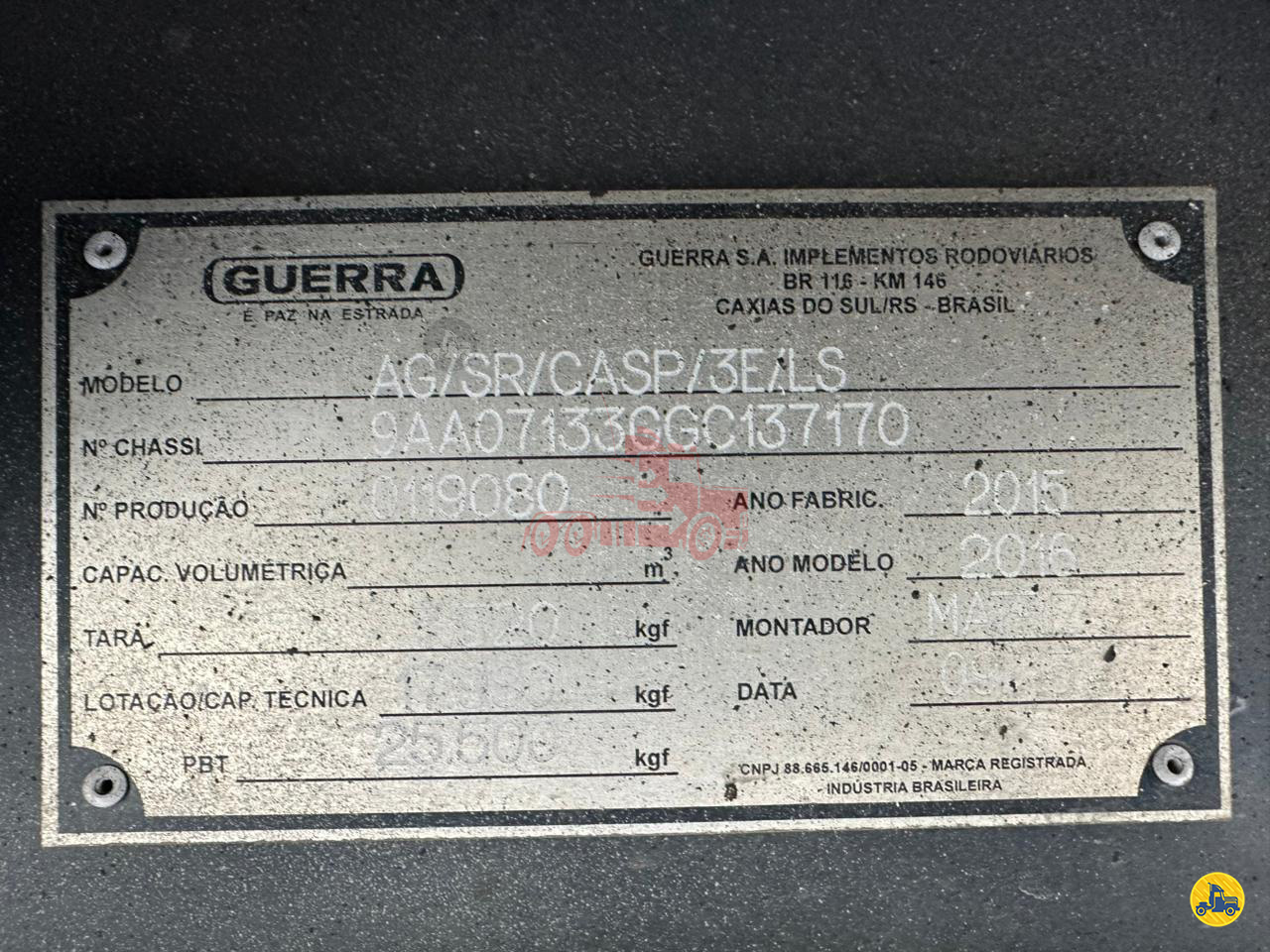Uma colisão no cavalo engatado, afetou as tampas (já reformadas), sem afetar chassis ou estrutura. Carreta trabalha normalmente.
